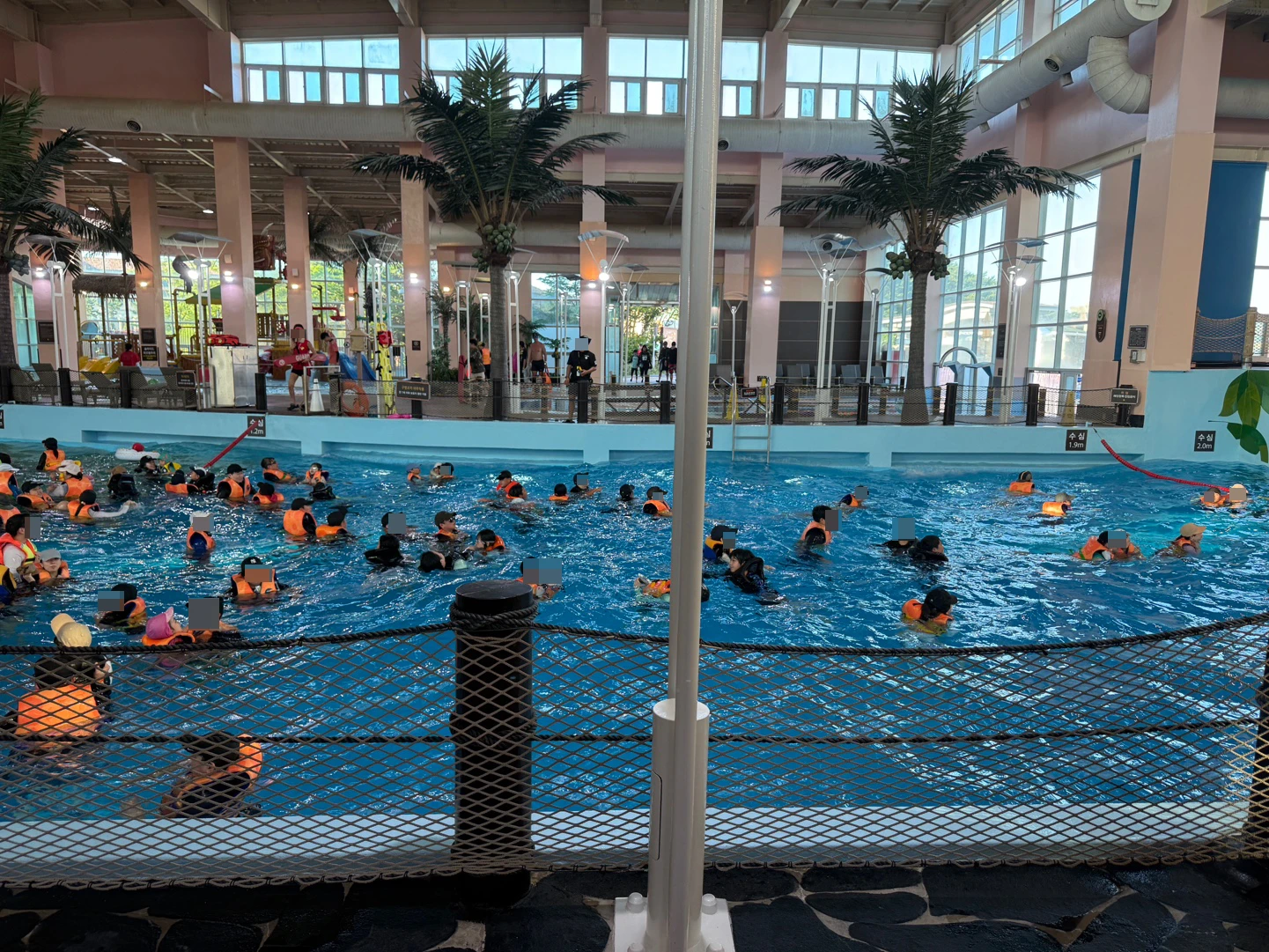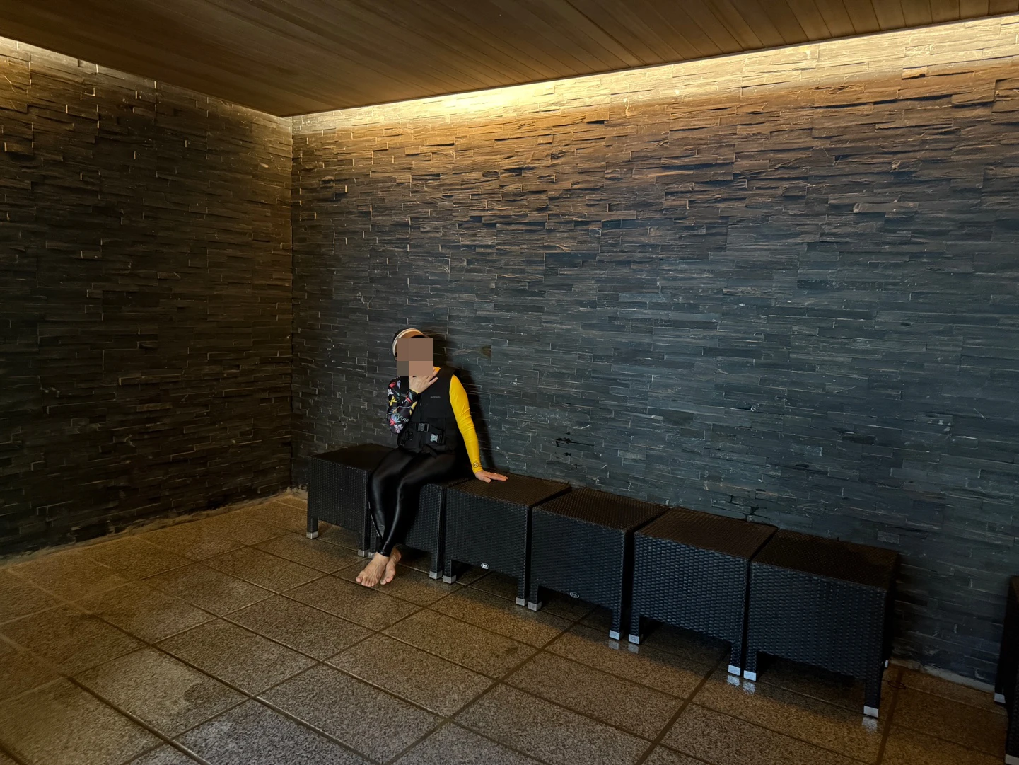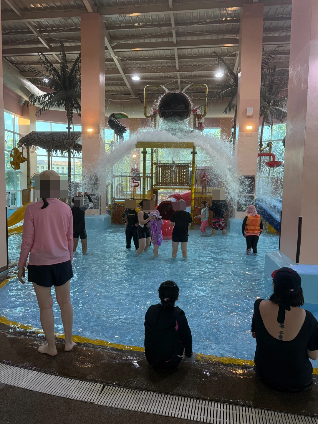 우린 짐을 챙겨서 스파룸으로 이동했는데 짐을 놔둘데가 없어서 그냥 파도풀 옆에 던져놨다.